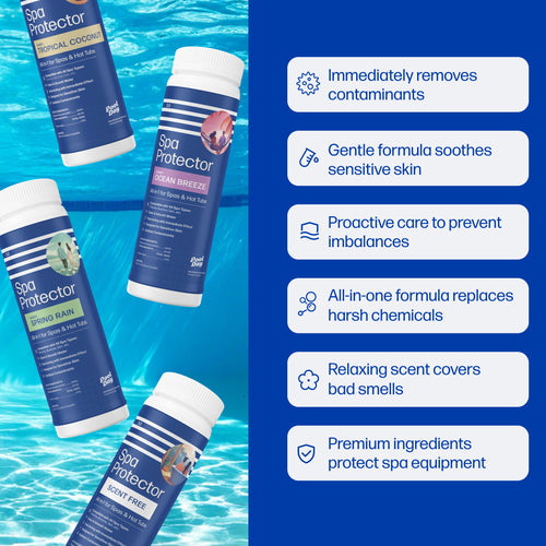 Use less Chlorine/Bromine - You will notice that your spa uses far less chlorine (or alternative sanitizer) when using Spa Protector—saving you money and cutting down on the harsh smell of sanitizer!