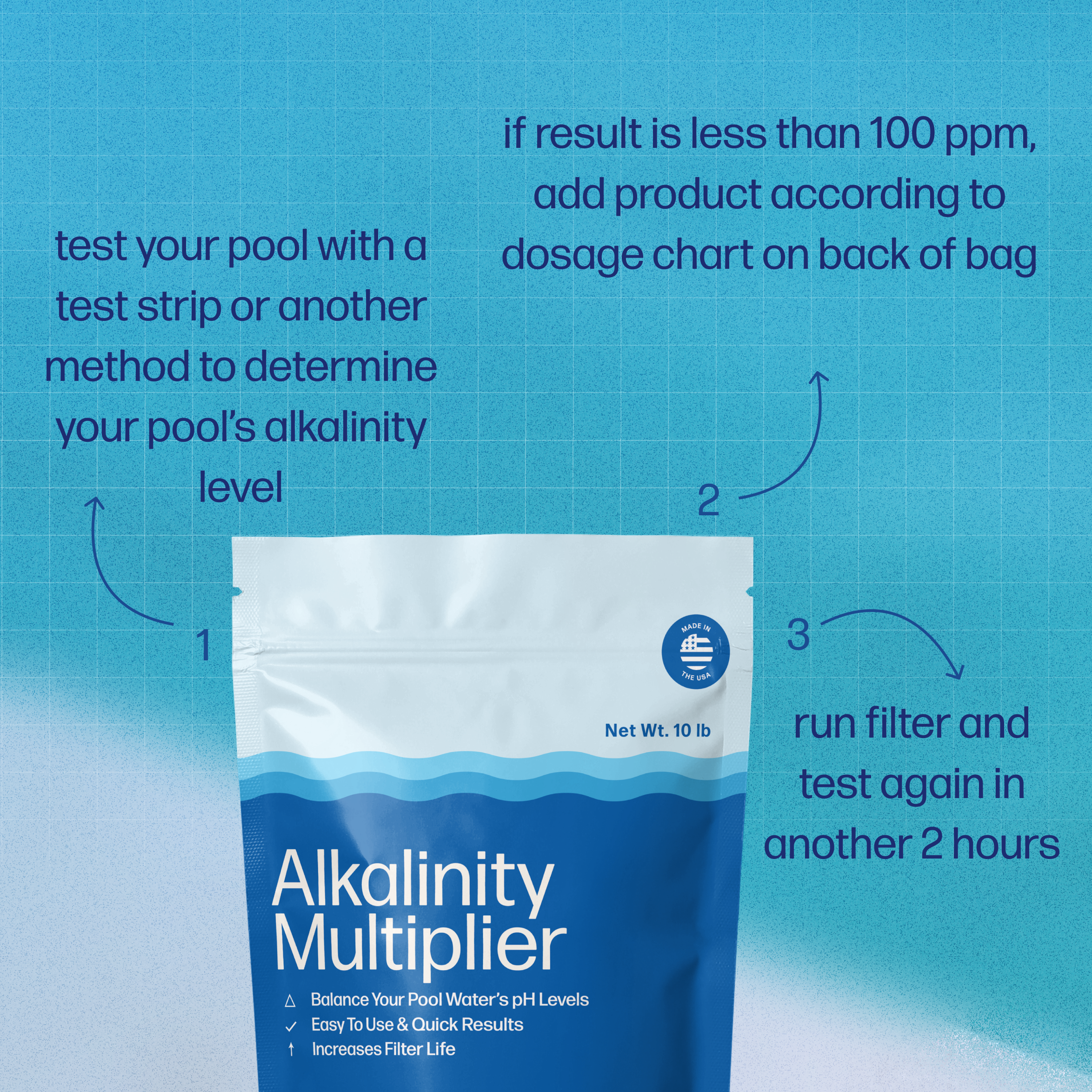Quickly and easily raise your pool’s alkalinity.