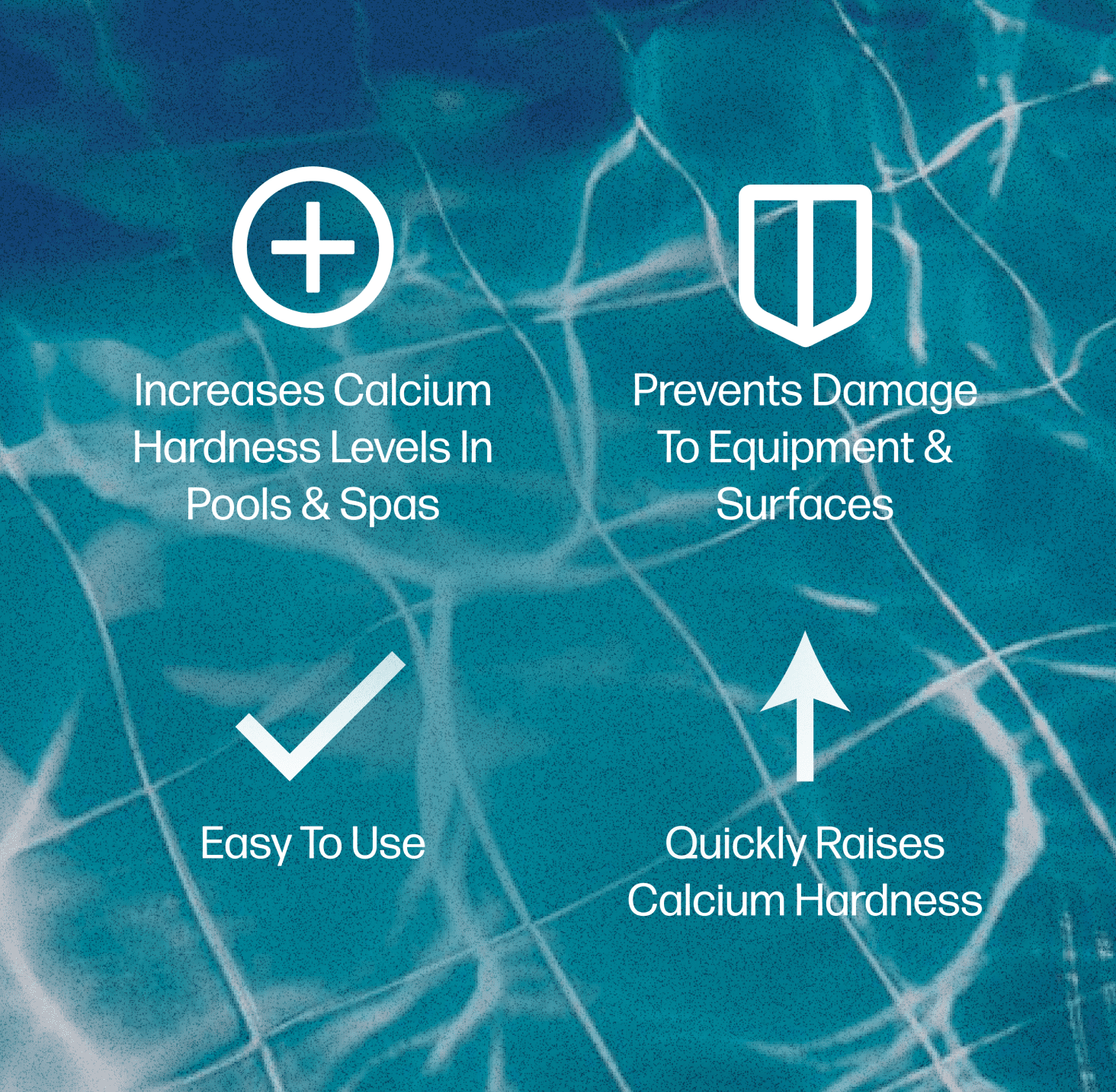 Boosts Hardness Fast: Elevates calcium levels to prevent corrosion, extending pool life.